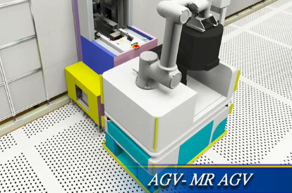 - 机器人式无人搬运车(MR-AGV):搭配制程机台间之自动搬送,AGV上方搭载机械手臂,方便夹取Foup运送,此可省去人员搬运作业及制程等待时间。
