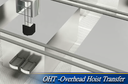 - OHT无人搬运车(Overhead Hoist Transfer):主要搬运Foup至各制程设备间的Load/Unload Port,OHT夹取Foup于高空轨道输送系统上行进,除可有效节省及利用空间外,另对比传统人工搬送作业流程,更能大幅提高搬送效率,节省搬送时间。